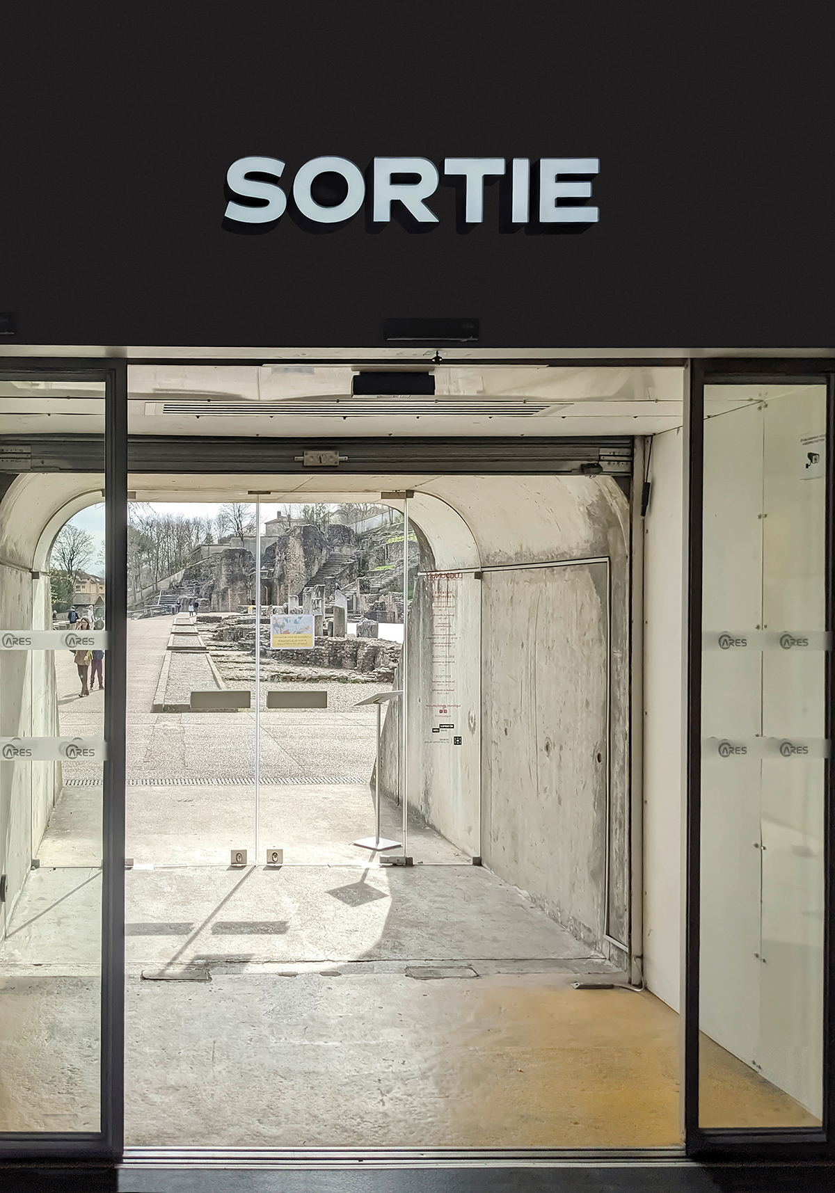 Exhibition graphics and wayfinding system for Lugdunum – Musée & Théâtres romains in Lyon, France, designed by Studio Gourdin is using our typeface family Dinamit.