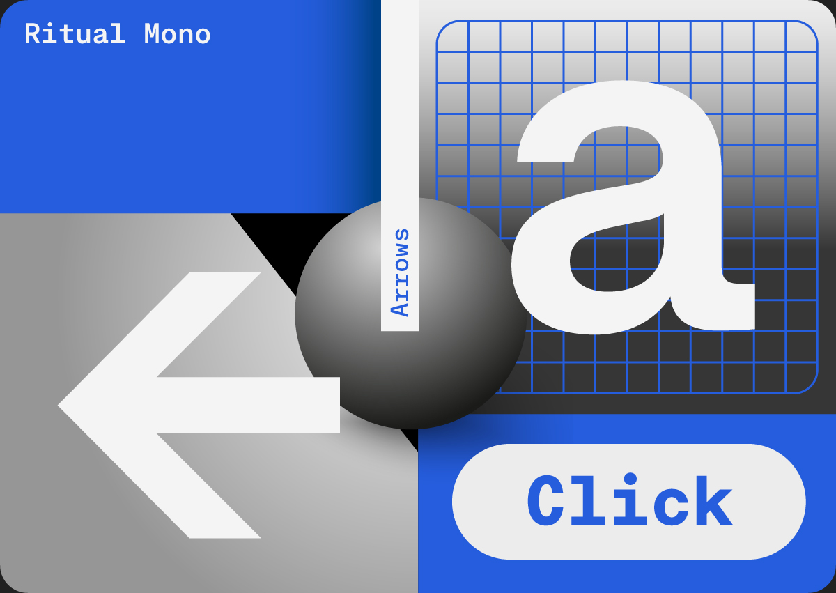 Ritual Mono is the monospaced variant of Ritual, Revolver’s high-precision sans with a confident voice. With its typewriter-like aesthetic, it lends itself to being used in correspondence, technical documentation, and any other situation where a fixed-pitch font is called for. The addition of the Mono family expands the application range of the Ritual series, and makes it a versatile asset for complex branding and editorial projects. Ritual Mono also makes an excellent stand-alone typeface, whether for its inherent qualities and technical look, or as an ironic nod to the days when typewriters ruled offices.